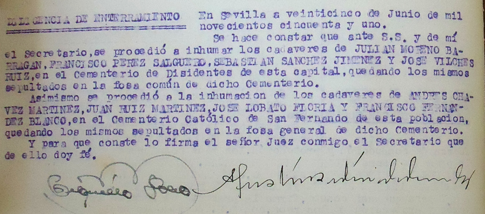 1951. Su cadáver fue inhumado en la fosa común de la Rotonda de los Fusilados.