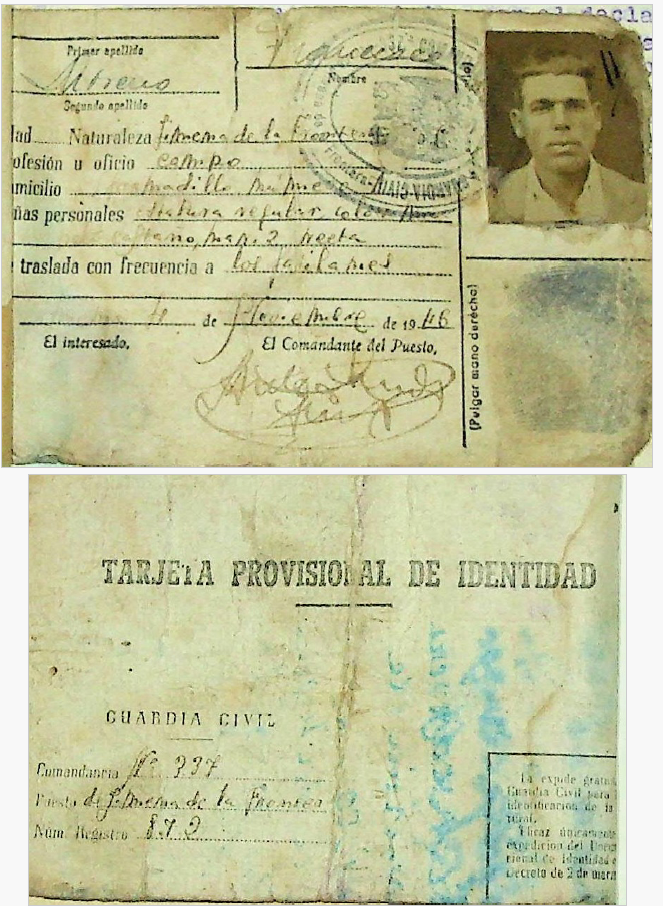 * Entre sus pertenencias se encontró su tarjeta provisional de identidad y una carta expedida en Tánger el 25/09/1948 dirigida a su hermano Diego, también perseguido como guerrillero.