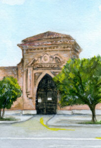 En Granada solo quedan vestigios de la puerta de su antigua Prisión Provincial, puesta en funcionamiento en 1933. La policromía del escudo republicano y su relieve pasó la censura durante toda la dictadura. Muchos dicen que no fue un descuido de los censores, sino que se quiso así para que todos los presos políticos recordaran que aquella cárcel donde estaban desnutridos, hacinados y en las peores condiciones había sido creada por los suyos en una época de paz.